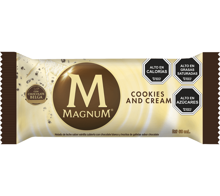 Helado de leche sabor vainilla cubierto con chocolate blanco y trocitos de galletas sabor chocolate.